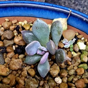 グラプトベリア デビー 紅葉が始まりピンク色に変化。何度か雨に打たれたりしたので粉は剥げ気味…