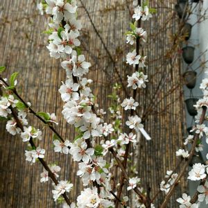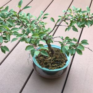 富士桜湖上の舞🌸 夫の盆栽🌸です 富士山近隣で発見された野生種の桜だそうです。 1cmほどの可憐な花🌸で豆桜とも言うそうです。