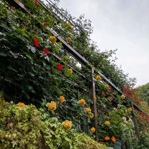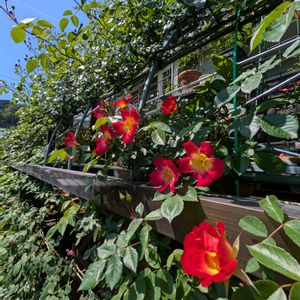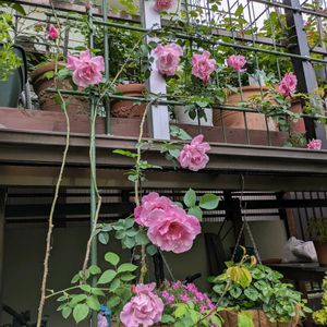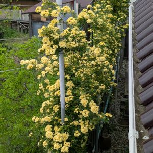 2025年5月7日(水)、晴れ、その2。 つるバラ「コクテール」が100ぐらい咲いた。そのうち、満開の花50首を摘み取った。カットすると、栄養がツボミの方へ行く。 少し、可哀想だけど、次のバラ達のために許して! 我が家の一階は、空中回廊が二階を覆っているため、森の中のような雰囲気になった。 小さな庭なのに、バラの森を味わえる。 今年は、プリンセス・ドゥ・モナコ、エマ、クローネンブルグの3品種を枯らしてしまいそう😭😭😭 良い土を購入して植え替えたのに、なぜ? でも、生き残っている63品種に感謝しよう。
