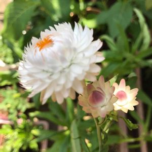 春に蒔いた帝王貝細工が何日もかけて開きました💕 ドライフラワーに最適😊 いい天気のせいか 1番右の子 ライトアップしてるように写りました✨