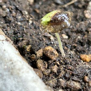 買ってきたレタスのフィルムにへばり付いているのを見つけ、プランターに植えた謎の羽付き種から、芽🌱が出てきました。 「キミは運が強いねー。一体、何者なの❓」 「ふふふ🤭まだないしょ❗️」