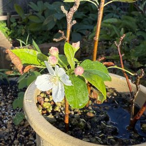 春に濃いピンクの蕾と白い花が咲いてる木があって「桜?」と思ったけど葉っぱが違う💦 写メ撮って検索かけたら【りんご】って出たけどあってますかね?? そのお家の方に枝を分けていただいて挿し木にしたら根付いて花が咲きました!