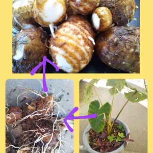 🤔これは里芋ですよね? 姉のところから来た鉢植えから 謎の芽が出てきて 様子を見てましたが! 今朝掘りあげたら これ、やっぱり 里芋で間違いなし!😆 ですよね? 違ってたら教えて下さい😅 大小10個の芋が出来てました😃 間違いなく里芋なら 今夜は芋の煮っころがし します💖