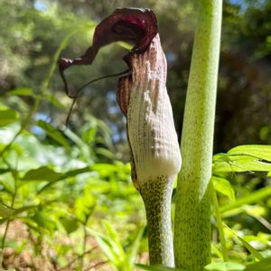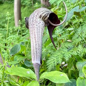 はままつフラワーパークの公式ホームページに ウラシマソウが開花しています とあったので、これは見に行くしかない! と 意気込んで行ってきました😊 が、場所がはっきり分からず 2日に渡って探して探して探して‥💦 やっと出会えた時には 嬉しくて「浦島さーん!」と駆け寄るも 花?はカッサカサで既にお爺ちゃんの様でした😅