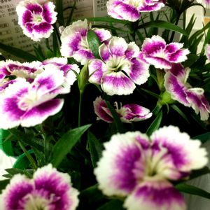 ♡ナデシコ オリビアホワイトアイ♡ コンパクトサイズの四季咲きナデシコ✿︎✿︎✿︎ 暑さ寒さに強く育てやすいみたいです(*ˊ˘ˋ*)。♪︎:*° 濃い紫色の縁取りが➰ かわいいですね〜(✿´ ꒳ ` )♡