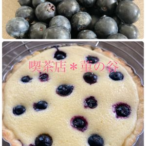 喫茶店*菫の谷 近くの農園のブルーベリー を買いました 久しぶりにお菓子を焼きました ブルーベリーチーズタルト ですよ 一緒にお茶しませんか🫖☕️🍰 オリンピックを観ながら🤗