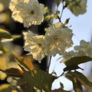 白〜黄緑の八重桜と出会い🤍💚 太陽が降り始めた頃、透けて光る姿に惹かれて🤩 🔍オオシマザクラを基に生まれた栽培品種のサトザクラ群のサクラで日本原産のヤエザクラ。イチヨウザクラと呼ばれることもある🌸 スラっとした背の高い鉢植え。 画像検索の結果です。 …判断できませんが、一応。