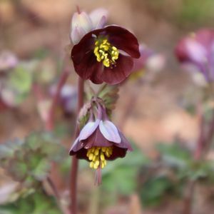 今日のお花 オダマキ4種 ①チョコレートソルジャー ②ミヤマオダマキ(シロ) ③ミヤマオダマキ(青) ④ヤマオダマキ