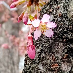 🌸オカメザクラ(おかめ桜)が咲き出しました。 オカメザクラは1947(昭和22)年にイギリスの桜研究家C.イングラム氏がカンヒザクラ(寒緋桜)とマメザクラ(豆桜・富士桜)とを交配させて作出された外国産の栽培品種のサクラです。 イギリス生まれのサクラですが早咲・多花性で樹が大きくならなず花が下向きにつくのが特徴です。 名称はお面のおかめから。 尚、京都の大報恩寺(千本釈迦堂)の阿亀桜(おかめザクラ)は単独木に対する愛称で、品種としてもシダレザクラ(枝垂れ桜)なので、本品種とは無関係ですので注意が必要です。 『🏷️太陽がくれた季節a』 『🏷️桃色百花繚乱』 『🏷️葵い空』 『🏷️2025年櫻鐵サクラコレクション』 『🏷️2025年桜さくらサクラリレー』
