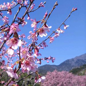 伊勢原市大山新道のおかめ桜を見てきました🌸 桜の好きなイギリス人によって、カンヒザクラとマメサクラを交配することで作出された桜だそうです🌸 道の両側に植えられて今が見頃です🌸