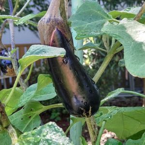 家庭菜園🍆🫑🫐 1️⃣秋茄子🍆 8月16日に切り戻しした茄子。葉の虫被害も無く🍆も順調に収穫出来ている🎶いつまで収穫出来るかなぁ🧤😚 2️⃣ジャンボピーマン🫑 私の背丈を超える高さになっている☺️🎶 ありがたいことにまだまだ🫑収穫出来ている🎶 3️⃣オクラ🎶 虫害で葉っぱが穴あきになっているけれど、まだまだ収穫出来ている🎶 4️⃣今日の収穫✨✨ ブルーベリー🫐は最終収穫🧤☺️鳥よけネットも外しました。 後は鹿沼土の追加とお礼肥料。1月〜2月の剪定作業までほっときです☺️🎶 ゴーヤも最終収穫かな❓️ 虫被害が半端ない😅明日天気良かったら片付けしよう🧤☺️ 茄子・ピーマン・オクラまだまだ収穫出来るようです☺️🎶 収穫に感謝💞