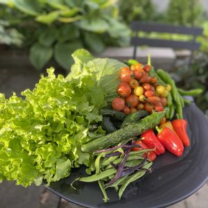 家庭菜園🍅🫑🍆🫐 トマト🍅わき芽を挿し芽して育てたトマト 無事成長して収穫出来るようになった🎶🎶🍅 1️⃣シュガーミニトマト🍅🍅🍅 2️⃣シュガーミニトマト 🌱わき芽を育てて5月24日植え付け 🌿🍅次々に赤く色付き収穫🎶🎶 虫食い被害も発生しだした😱💦 3️⃣ぜいたくミニトマト🍅🍅🍅 4️⃣ぜいたくミニトマト 🌱わき芽を育てて6月7日植え付け 🌿🍅次々赤く色付き収穫🎶🎶🎶 こちらも虫食い被害も発生しだした〜😅💦 5️⃣今日の収穫☺️🎶🎶🧤 茄子🍆…今回初めましての虫の出現で葉っぱが細かく穴あきだらけ💦 常連さんの虫は今回お目にかからないのに🤔 ピーマン🫑…京みどりは順調に収穫出来てる🎶 ジャンボピーマンまだ収穫出来てない😅💦 ゴーヤ…今一番勢いあり次々実が出来てる🎶🎶 オクラ…7鉢のプランターで栽培してるので毎日収穫🎶🎶🤤🥢 ミニトマト🍅…赤く熟したトマト💞濃い味で美味しい🤤🎶 ブルーベリー🫐…毎日お日様☀️と戦いながら収穫🧤☺️🎶🎶