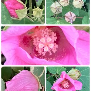 画像1/芙蓉 散歩道で… 綺麗なピンク🩷🩷🩷 画像2/ペチュニア 散歩道で… 画像3/オステオスペルマムの蕾 今日もまだ咲かなかったけど、昨日より少し開いてます〜 画像4/白檀 昨日、子吹きを発見した白檀とは別の白檀にも子吹き発根! 老眼鏡かけないと見えないくらいまだ小さい! 画像5/今日の収穫♪