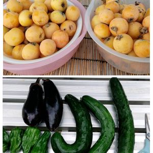 ↑ 昨日 友人宅の枇杷がカラスに食べられてる~っと連絡があったので 18時過ぎでしたけど ダッシュで車を走らせて隣町の友人宅へ行き 娘と一緒に枇杷狩りを楽しみました🎵 ↓ 今朝の収穫 朝起きて 雨が降ってなかったので ダッシュで畑へ行き収穫をすませました キュウリ ナス ピーマン これは全て今夜のおかずにいただきます😊🍆