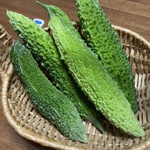 今日の収穫 苦瓜 私は薄く切って サッとゆがいてポン酢で食べるのが一番好きです