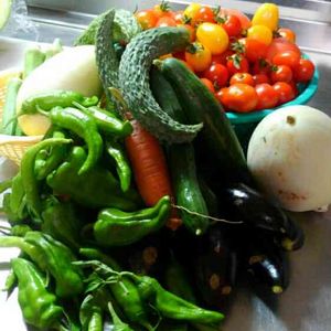 2018.8.25 今日の収穫。 ゴーヤ25本、トマト6個。 夏野菜も終わりです。 次はオクラとインゲンが準備中。