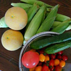 こんにちは😃✋ 今日も暑いですね🎶 今日はお仕事休みです😆🎵🎵 朝4時起きしていろいろ済ませ6時前には外回りの草むしりに出かけました💗 暑い☀☀☀ 野菜も収穫してきました‼ 初めてメロン🍈獲れました コロタンで~す🎶