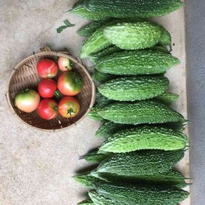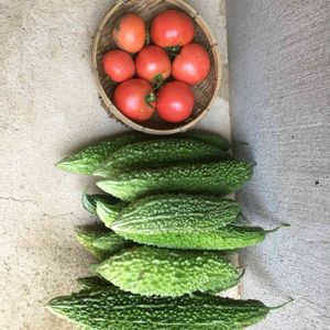2018.7.28 今日の収穫。 台風が来る前に収穫しました。 トマト21個、ゴーヤ10本。