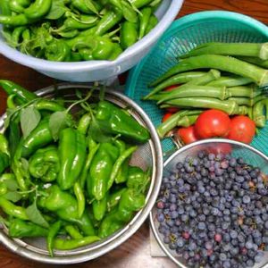 久しぶりに畑を覗いてきました‼ ピーマン、シシトウ、おもいっきりできていました‼ 大きくなったオクラ、もう終わり掛けのトマト🍅、 ブルーベリー等々😄 ブルーベリーと春に取れた🍓が冷凍してあるからジャム作ろうかな⁉