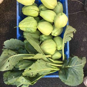2017.11.3 今日の収穫。 ハヤトウリ21個、小松菜。 ハヤトウリは来週も期待できそうです。
