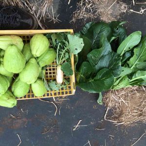 2017.10.28 今日の収穫。 ハヤトウリ15個、小松菜、オクラ1個。 台風の被害はハヤトウリ4個が落下したくらい。あとは風で物が飛ばされていた。 ハヤトウリはこれから量産体制になるので、台風に負けないで頑張ってほしいです。