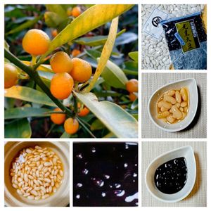キンズ🍊 黒豆と大福豆✨ 頑張って煮てみました🤗 (黒豆の煮汁はのどに良いので、煮汁を多めに煮てしまい、器に盛る時も煮汁を多めに盛ってしまうので…お豆が見えませんでしたw😆)