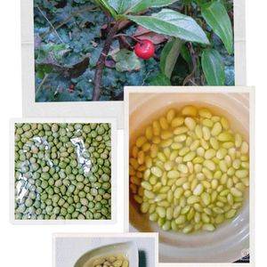 藪柑子…🐥に食べられて、ひと粒だけ残っています 秘伝豆 少し固めにゆでて、浸し豆にしてみました✨ 歯触りたのし😊