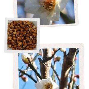 甲州小梅が咲きはじめました✨🤗 カリカリ梅作れると良いなぁ〜🤔 (余った)節分豆のうま煮 これなら、歳の数を気にせずポリポリいけちゃいます😆デヘヘ