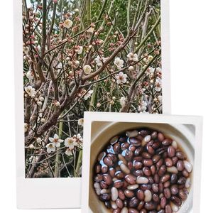 甲州小梅 だいぶ咲き揃ってきました✨ 金時豆、うずら豆、彩りに大福豆を少々🫘 煮てみました もう少し上手く煮えるようになりたいです😅テヘ
