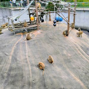 この場面は、もしかしたらノドカに見えるかもしれない。 しかし実際は、物凄い音が絶え間なく聞こえていたのである。 最初は猿舎の中で 工事でもしているのかと思っていた。 何かを力いっぱい打ちつけるような 揺るがしたりぶつけるような… 「何かが暴れているのか…」 そう気付いた。 暴れている個体がいる。そして外にいるヒヒたちは 静かにそれを聴いている。 生まれつき気が荒くて隔離されているのか この日だけなのか… 立て看板に『ここに物を落とすと返ってきません』とあった。 ヤバいよヤバいよ〜 ビビるよ〜 どころではない。 自暴自棄になって無差別に暴力を行使したい人は ここへジャンプしてみたらどうだろう… 普通に生きる希望を取り戻すのではないだろうか。 生還できれば であるが。