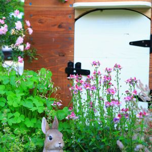 昨年の台風で小屋のドアが壊れ 半年以上もドアなし状態💦 今回庭作りの師匠に助っ人を頼んで 2人で慣れない大工仕事に挑戦してみました🔨 ドアの破損箇所板1枚分を切断して新たな板を接合 出来上がったドアに蝶番を取付けて完成✨ ついでに屋根の幕板も張替えて 茶色の部分は全て塗装し直したら いい感じに小屋が復活しました😁