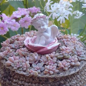 カゴから出して、貝殻多肉の日向ぼっこ 今回は、この子が主役に…💚 姫しゅうれい、どの貝殻にも入って育ちやすいです