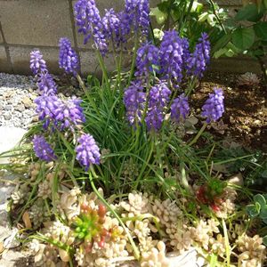 ムスカリと地植え多肉が元気😆☀️ 無事に冬を越しました💖