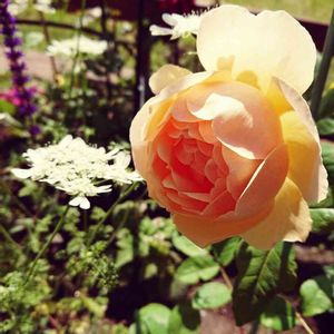ジュード✨咲きました👏 オルラヤと一緒にステキです😆 花壇に雑草が…イヤ😢