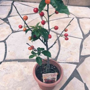 今年3月に桜の花🌸が可愛く買ったサクランボの木✌️ そろそろ食べ頃の色となって来ました😊 写真を撮る時に、一つサクランボが落ちたので、食べてみた😊 少し酸っぱかったけど、ちゃんとサクランボの味がしました😍