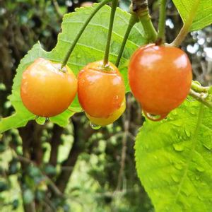 雨がやんで外にでると、さくらんぼ🍒が色づきはじめましたよ~😁