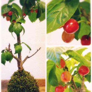 ☆本日2枚目☆ 苔玉のサクランボが色付きました🍒 可愛いなぁヽ(●´ε`●)ノ