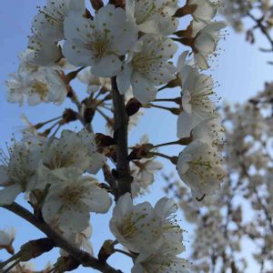 さくらんぼ、ナポレオンの花が初めて咲きました💕 佐藤錦の花がまだ咲いてないからとりあえず咲いたとこに受粉をチョンチョン💖