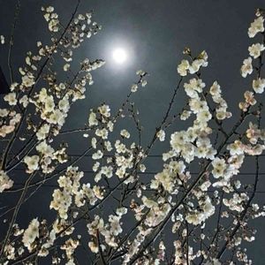 夜分に失礼致します 春の宵に、夜桜をどうぞ✨ 庭のサクランボの花です。 びっくりするぐらい、一気に咲き進みました🌸 例年ソメイヨシノより二週間前に開花します。Whit day 前後に桜が咲きます🌸 かおるんるんさんの🏷桜(さくら)リレー MIRUMOさんの🏷♥️桜リレー♬に参加します