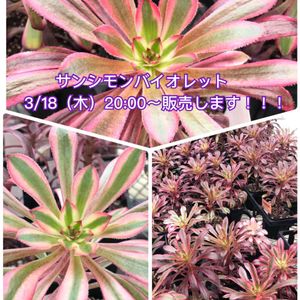 こんばんは🌙 今日はこちら、風が冷たく膨らみかけた桜の蕾がまた縮んでしまいそうな気温でした💦 そして風の強さで花粉も飛びまくっている様子… 花粉症の皆様、もう少しの辛抱です… お互いもうしばし耐えましょう… 先日も少しお伝えしましたが、いよいよ春到来!ということで、植物がどんどん入荷しています🌱 今回は久々の入荷、【サンシモンバイオレット】のお知らせです! こちらの【サンシモンバイオレット】は何とも言えない色合いで人気が高い商品! アエオニウムにもいろいろ種類がありますが【サンシモンバイオレット】は他のアエオニウムより気品があって素敵✨(私個人の見解です笑笑) 18日(木)20:00から楽天市場、Yahoo!ショッピングにて販売します! ※ご購入後、送料訂正などの変更が必要な際(他のご注文との同梱処理を含む)クレジットカード決済以外のお支払い方法ではシステム上当店で変更出来ない場合がございます。ご了承ください。 ※異なるモールでのご注文は同梱等が出来ませんのでご注意ください。