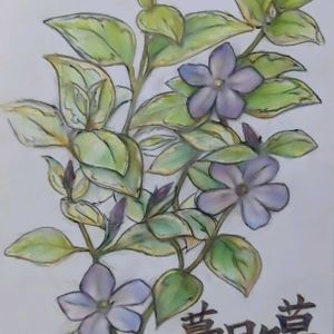 お絵かきタイム ボールペン併用した色鉛筆画 オリジナル「蔓日々草💜」
