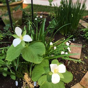 バラはまだまだ先の、我が家のお庭、、、 こんな感じで早春がまとめて一気に来るんですよ。 突然咲いた、オオバナエンレイソウの後ろのスノーフレーク\( ¨̮ )/ 出て来ないなぁと思っていたら、 今頃! ここに植えていたのかぁ〜笑笑 我が家では教科書通りの咲く順番は、 関係ない😅ですね〜 右横には原種チューリップや水仙も咲いています💛