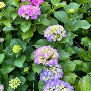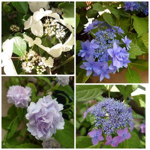 花色が変化しはじめています 同じ株でも部分によって花の色が違うのは、根から送られてくるアルミニウムの量に差があるためだそうです