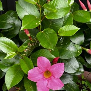 マンデビラ♥️ もう外では無理と思い、植え替えてサンルームに置いてます❣️ まだ咲いてますよ➰👍