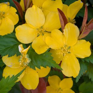 1) レンギョウ(連翹) 2) ユキヤナギ(雪柳) 3) ヤマブキ(山吹) 4) マルバウツギ(丸葉空木)の蕾 5) モミジ(椛)