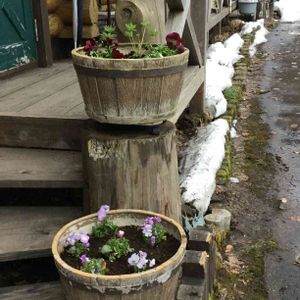玄関がさみしいので この前買った プライスダウンの花 パンジー ¥ 30x7 ¥ 50x2 ルピナス ¥100x2 根が回ってるし 植える場所がまだ雪だらけなので 取り敢えず 植えました 雪が消えたら お引越しかな?