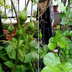 虫との闘いに耐え残ったバラの蕾も膨らんでます🌹🍃 サングリア、ブルームーンストーン。