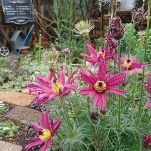 我が家の宿根草メインに作っている花壇です 冬の間 色が無いときにも オキナグサの赤いお花が 咲いてくれていました🌼 次から次へと咲きボリュームアップ❤️ そろそろ このモフモフした綿毛を ドライにしよう*✲゚*。 ♪