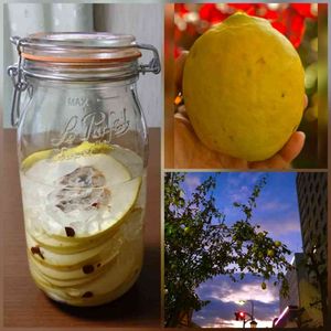 ~これが花梨なの~ 友人から貴重な花梨1個だけを頂戴して一週間経過~ 本日、やっと花梨酒の準備をしました 初めて見た花梨は、大きく硬いけれど甘~い良い香りがします。 右下↘️は、友人マンションの近くで実った花梨の樹です こんな風に、いっぱいになるんだね~ 花梨を育てている方、いらっしゃいますか?
