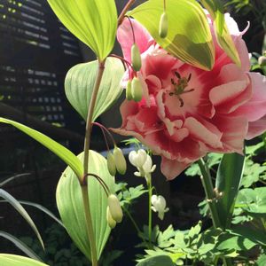 ナルコユリとタイツリ草が咲きました🎣 風で曲がってしまったチューリップ🌷と、いい感じで撮れました😊